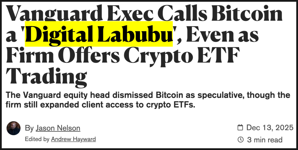 뱅가드의 글로벌 퀀트 주식 총괄인 존 아메릭스(John Ameriks)가 비트코인을 ‘디지털 라부부’라고 표현했기 때문입니다.