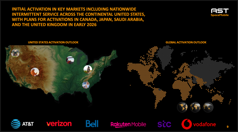기존 위성 인터넷 서비스는 대체로 지상국과 별도 단말기를 필요로 한다는 한계가 있었는데, AST 스페이스모바일은 스마트폰 자체를 신호 수신 장치로 활용하는 독창적인 접근을 선택했습니다. 이 때문에 많은 글로벌 통신사들이 이 회사와 협업하고 있습니다. 이미 AT&T, 보다폰(Vodafone), 라쿠텐 모바일(Rakuten Mobile) 등을 포함해 50개 이상의 이동통신사와 파트너 관계를 맺었고, 이들 통신사의 가입자 수를 합하면 약 30억 명에 이릅니다.