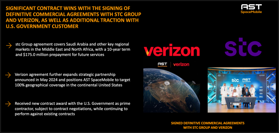 최근 분기 실적 발표에서도 이런 성과가 다시 한 번 확인됐습니다. 미국에서는 버라이즌(Verizon)과의 확정된 상업 계약을 체결했고, 사우디아라비아의 STC와도 10년 장기 파트너십을 발표했습니다. 특히 STC 계약에는 선지급(prepayment) 구조도 포함되어 있어, 향후 매출로 이어질 수 있는 매우 구체적인 수익 기반이 마련되고 있다는 점이 주목됩니다.