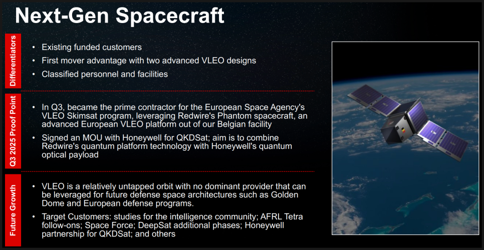 레드와이어의 사업을 조금 더 쉽게 나누면 다섯 가지 축으로 볼 수 있습니다. 첫 번째는 초저궤도(VLEO)와 정지궤도(GEO) 같은 특수 궤도에서 운용되는 차세대 우주선입니다. 유럽과 미국에서 이미 여러 개의 실증 프로젝트를 따내서, 새로운 궤도 영역에서 사실상 선점 효과를 누리고 있습니다.
