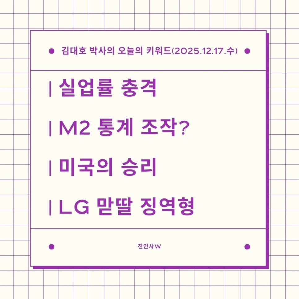 #김대호박사의오늘의키워드 #sbsbiz채널 #경제흐름읽기 #시간은소중히쓰자 #주식투자 #부동산투자 #실업률충격 #M2통계조작 #미국의승리 #LG맏딸징역형