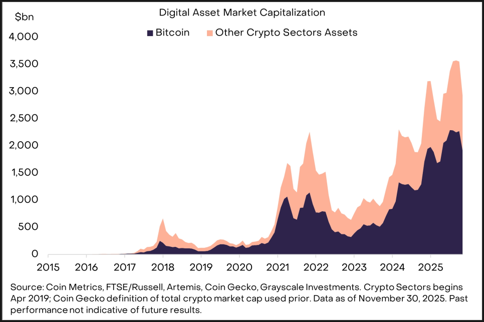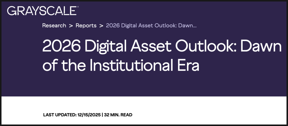 그레이스케일이 2026년을 바라보는 크립토 시장 전망을 정리한 보고서를 내놨습니다. 한마디로 요약하면, 이제 크립토 시장이 개인 투자자 중심의 투기 국면을 지나서 본격적인 기관 투자 시대로 들어가고 있다는 판단입니다 .