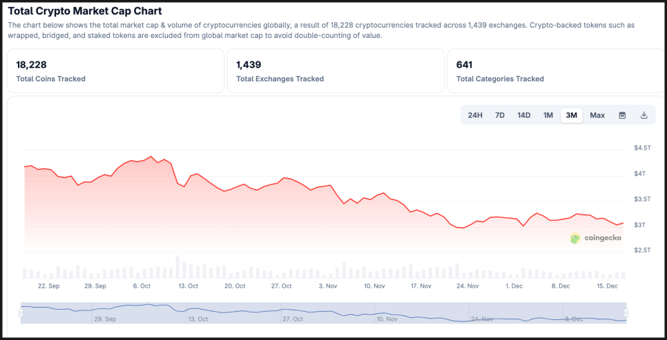 비트코인을 비롯한 주요 코인들이 다시 밀리면서, 전체 크립토 시장이 시가총액 3조 달러 선을 또 한 번 시험하고 있습니다. 이번 달 들어서만 세 번째로 이 수준 아래로 내려온 건데요. 시장 전체의 힘이 빠지고 있다는 신호로 해석하는 쪽이 많습니다.
