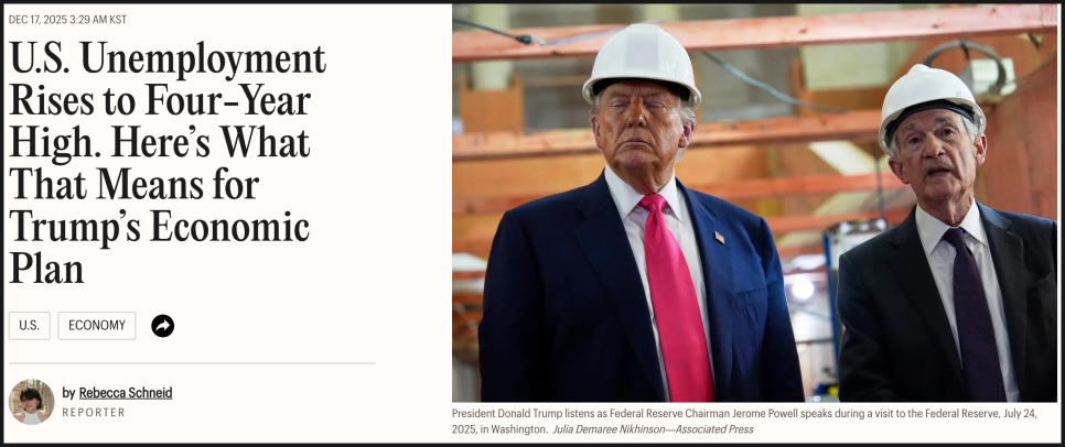 매크로 환경도 부담으로 작용했습니다. 미국 노동통계국이 발표한 최근 두 달치 고용 지표에서 실업률이 2021년 이후 최고 수준으로 올라왔다는 점이 시장을 흔들었고요.