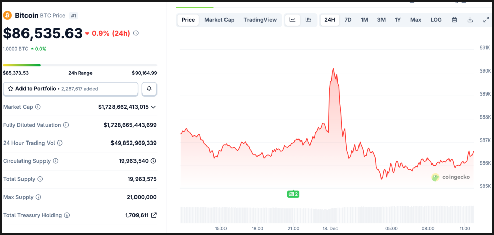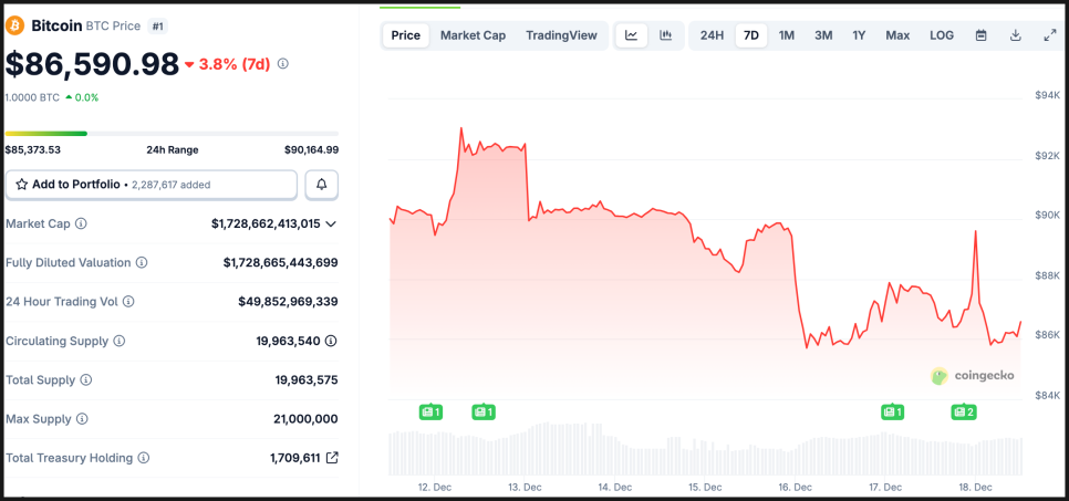 2025년 12월 18일 현 시점 핵심 암호화폐 이슈 정리해 드리겠습니다.