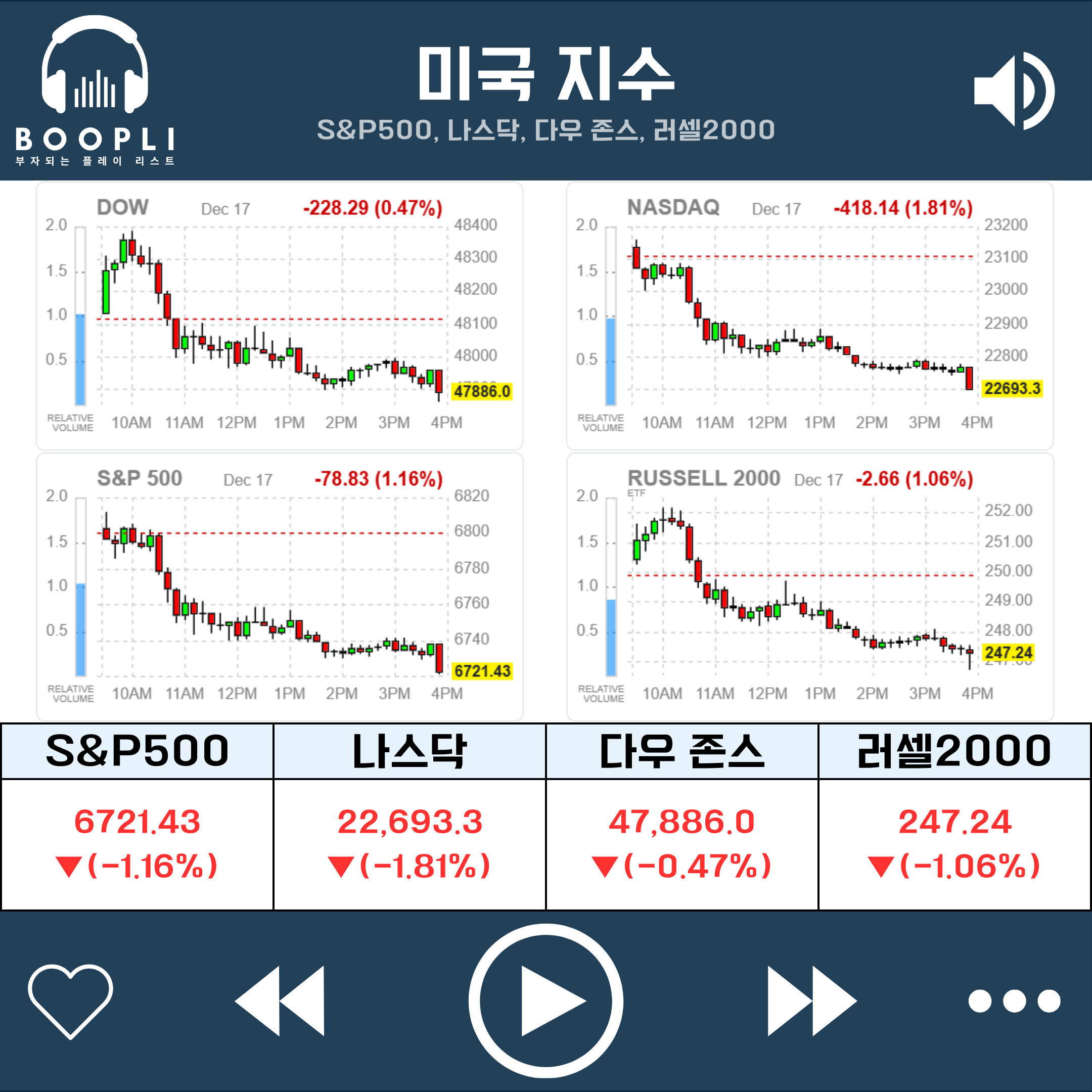 이에 따라 방어력을 보이던 다우와 러셀2000 역시 하락 전환