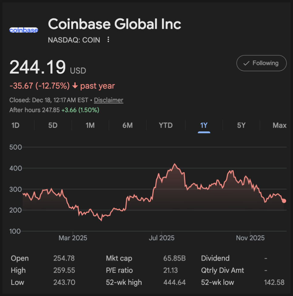 2025년 12월 18일에 다룰 종목은 코인베이스(Coinbase)입니다.