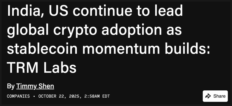 그럼에도 인도 시장 자체의 매력은 여전히 큽니다. 블록체인 분석업체 티알엠 랩스(TRM Labs)에 따르면, 인도는 글로벌 암호화폐 채택 순위에서 3년 연속 1위를 기록하고 있습니다. 미국이나 브라질, 필리핀보다도 이용자 기반과 활동성이 높다는 의미입니다. 규제는 까다롭지만, 시장 규모와 잠재력만 놓고 보면 글로벌 거래소 입장에서는 포기하기 어려운 곳이죠.