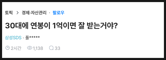 30대 중후반인데 연봉이 1억 정도면 어떤거야?