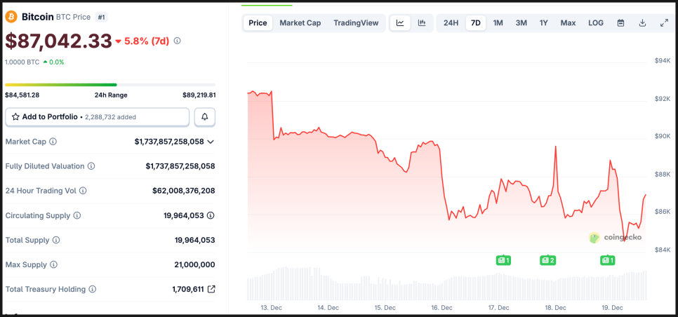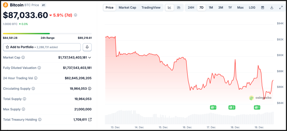 2025년 12월 19일 현 시점 가장 중요한 암호화폐 이슈 정리해 드리겠습니다.