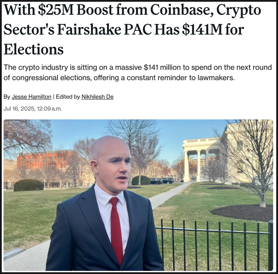 다만 정치 지형이 과거와 달라진 점도 있습니다. 암호화폐 산업은 이미 막대한 정치 자금을 움직일 수 있는 수준으로 성장했습니다. 대표적인 친암호화폐 정치자금 조직인 페어셰이크는 1억 달러가 넘는 자금을 보유하고 있는 것으로 알려졌습니다. 이제 의원들은 암호화폐에 대한 입장이, 수백만 달러 규모의 선거 자금 유입이나 반대 캠페인으로 직결될 수 있다는 점을 무시하기 어려운 상황입니다.