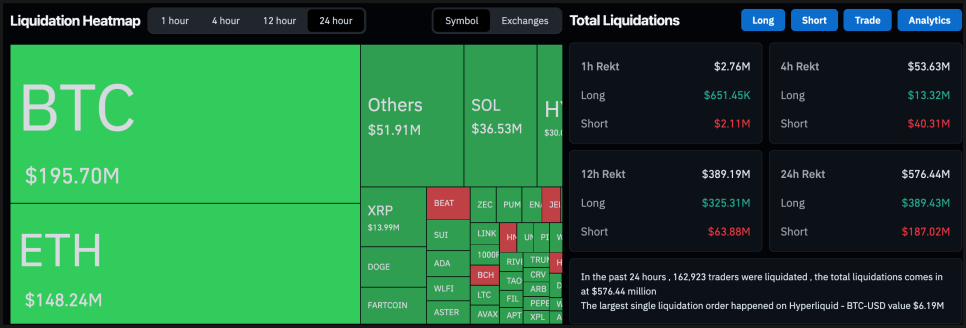 가격 변동성이 커지면서 파생상품 시장에서는 24시간 동안 약 5억5천만 달러 규모의 강제 청산이 발생했습니다. 코인글래스 데이터 기준인데요. 여기에는 롱 포지션과 숏 포지션이 모두 포함돼 있습니다. 한쪽만 무너진 게 아니라, 레버리지를 과도하게 쓴 포지션들이 전반적으로 정리된 흐름입니다.