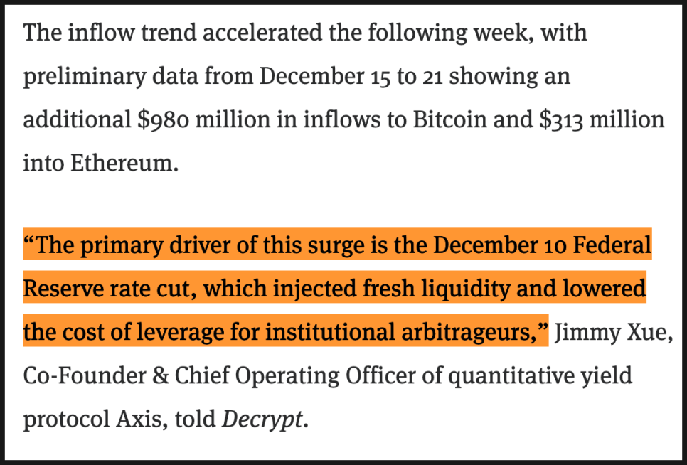 그럼에도 불구하고 DAT로 자금이 계속 들어오는 이유를 두고 연준의 금리 인하를 꼽는 시각이 있는데요. 금리가 내려가면서 레버리지를 활용한 기관 전략의 비용이 낮아졌고, 상대적으로 비트코인과 이더리움 같은 자산이 다시 매력적으로 보이기 시작했다는 거죠.