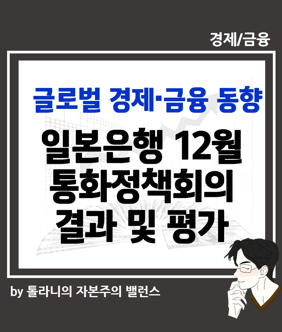 이에 ‘일본은행 12월 통화정책회의 결과 및 평가’ 관련하여 국제금융센터 보고서를 통해 좀 더 자세히 알아보도록 하겠습니다.