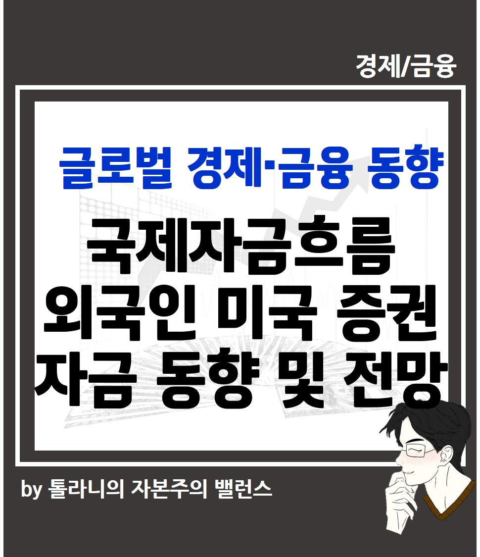 국제자본흐름이 외국인 증권자금이 미국으로 지속적으로 유입이 되고 있는데요. 최근 AI 버블론, 일본은행의 금리 인상 등으로 인해 미국 주식시장을 중심으로 유입폭이 축소 되고 있다는 분석인데요.