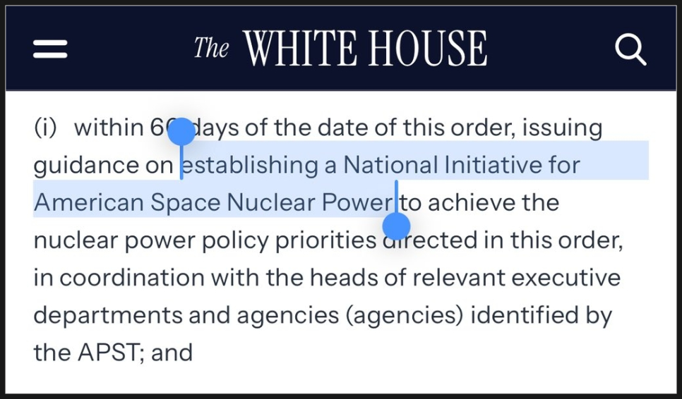 네 번째 축은 기술과 인프라입니다. 이번 명령에서 가장 파격적인 부분이 바로 우주 원자력입니다. 미국은 달 표면과 궤도에 핵 발전 원자로를 배치하는 것을 공식 정책으로 채택했고, 특히 달 표면에 설치될 원자로는 2030년까지 발사 준비를 마치는 것을 목표로 하고 있습니다. 이는 달 기지 운영, 장기 임무, 고출력 장비 운용을 염두에 둔 조치로 해석됩니다. 말 그대로 장기 프로젝트죠.