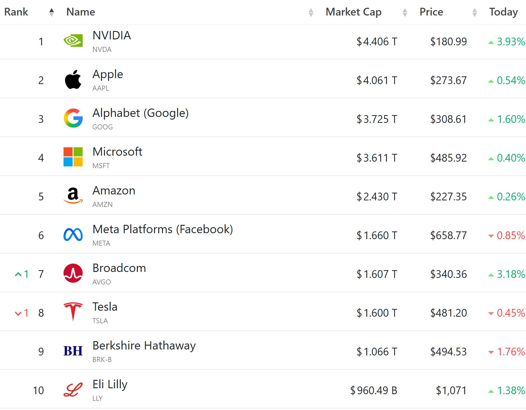 엔비디아는 전일 대비 +3.93% 큰 폭으로 상승하였으며, 애플 +0.54%, 알파벳 +1.55%, 마이크로소프트 +0.40%, 아마존 +0.26% 상승하였습니다. 반면 메타와 테슬라는 각각 -0.85%, -0.45% 하락하면서 거래를 마쳤습니다.