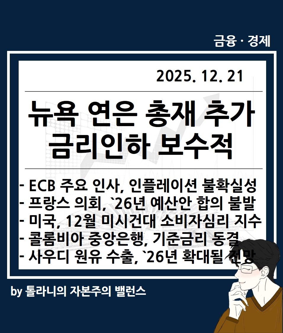 이에 ‘미국 뉴욕 증시 동향, 뉴욕 연은 총재 추가 금리인하 보수적 등 주요 국가 경제 및 금융 동향’ 관련하여 국제금융센터 보고서를 통해 좀 더 자세히 알아보도록 하겠습니다.