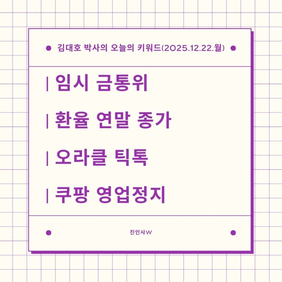 #김대호박사의오늘의키워드 #sbsbiz채널 #경제흐름읽기 #시간은소중히쓰자 #주식투자 #부동산투자 #임시금통위 #환율연말종가 #오라클틱톡 #쿠팡영업정지