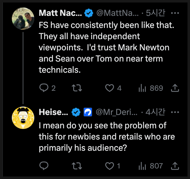 이 스레드에 달린 반응을 보면, “같은 회사에서 이렇게 다른 행동 지침을 주는 게 말이 되느냐”는 비판도 여전히 많습니다. 션 패럴의 설명이 논리적으로 맞더라도, 개인 투자자 입장에서는 혼란스러울 수 있다는 점 역시 부정하기 어렵습니다.