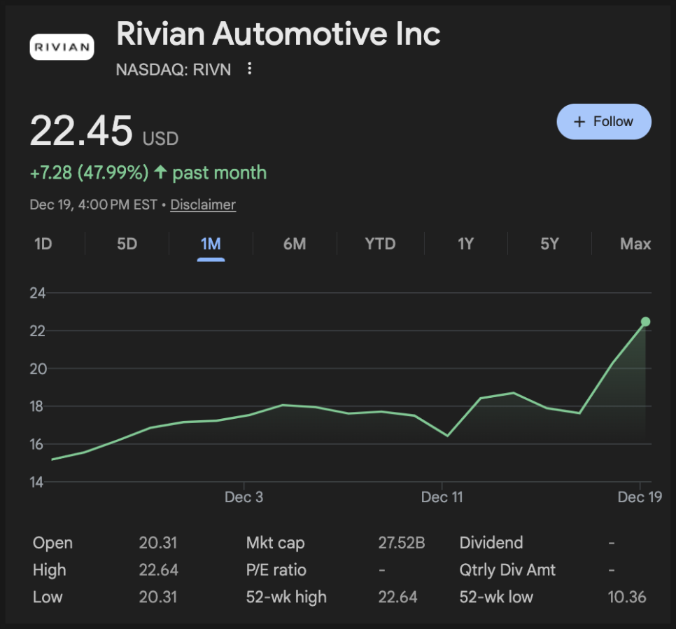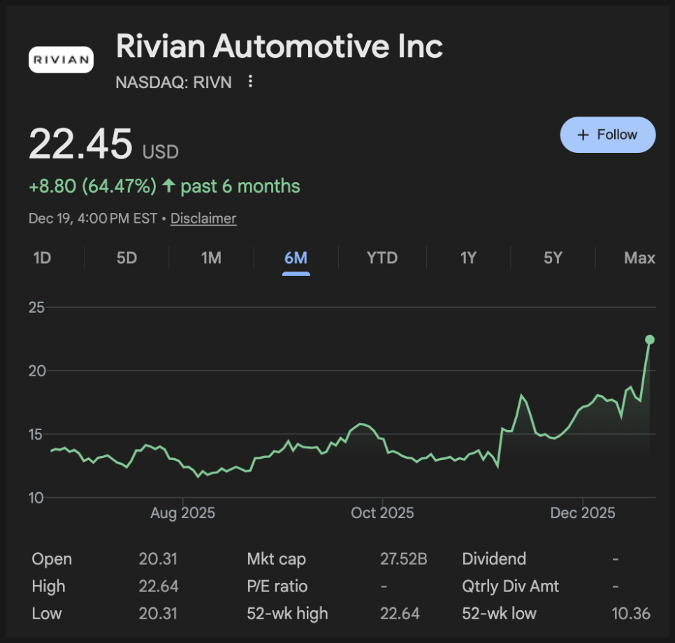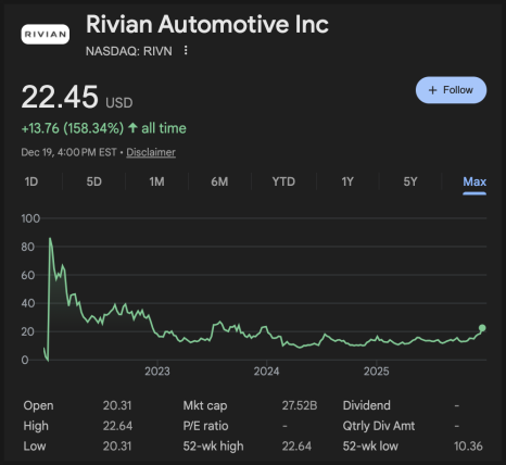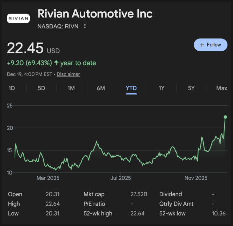 2025년 12월 22일에 다룰 종목은 리비안(RIVN)입니다.