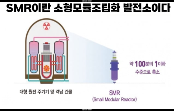 원자력 발전의 개념은 물의 흐름에 따라 1. 원자로가 물을 데워 증기로 만드는 1차 영역, 2. 만들어진 증기로 터빈을 돌려 전기를 만드는 영역, 3. 바닷물을 통해 증기를 식혀주는 냉각의 영역이 있다. 여기서 SMR이 바로 3번째, 냉각의 역할을 큰 부지, 즉, 바닷물 없이 할 수 있게 된다. SMR이라 함은 "SMALL MODULAR REACTOR"의 약자로 4세대 원자력 발전기술로 "소형 모듈 원자로"이다. 3세대인 냉각제인 물이 아닌 "가스나 용융염"을 활용할 수도 있다.