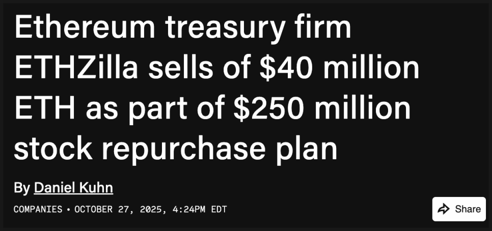 이더질라가 이더리움을 매도한 건 이번이 처음은 아닙니다. 지난 10월에도 2억5,000만 달러 규모의 자사주 매입 계획의 일환으로 약 4,000만 달러어치 이더리움을 처분한 바 있습니다.