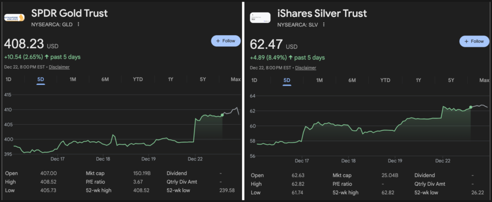 이날 가장 눈에 띄는 자산은 단연 금입니다. 금 가격은 하루 만에 2% 급등하며 온스당 4,475달러로 사상 최고치를 경신했습니다. 은 역시 1.6% 오르며 장중 한때 온스당 70달러에 육박하는 새로운 기록을 세웠습니다.
