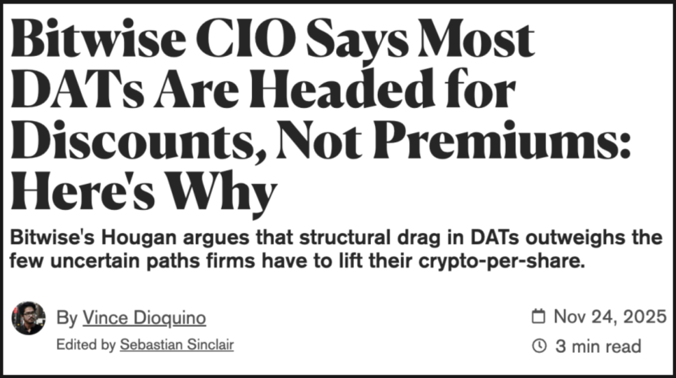 스트래티지나 비트마인처럼 규모가 크고 자본 접근성이 뛰어난 일부 기업을 제외하면, 상당수 DAT 기업들은 결국 시장에서 도태되거나, 전략 수정이라는 갈림길에 설 수밖에 없다는 애널리스트들의 경고가 현실로 나타나는 모습이죠. 가격 하락 국면에서는 추가 매입 여력이 급격히 줄어들고, 부채 상환 압박까지 겹치면 비트코인이나 이더리움을 계속 사는 흐름은 더 이상 유지되기 어렵죠.