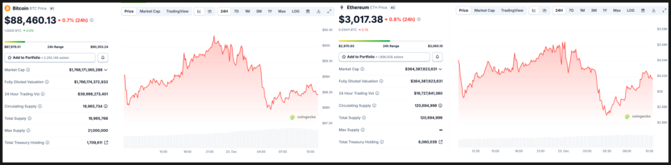 2025년 12월 23일 현 시점 가장 중요한 암호화폐 이슈 정리해 드리겠습니다.