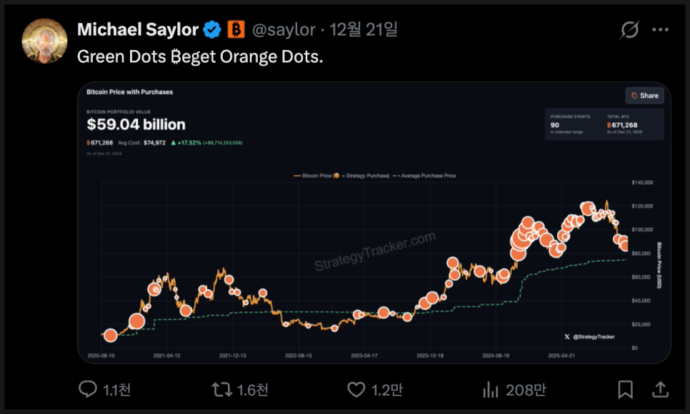 어쨌든 정리하면 스트래티지는 연말을 앞두고 비트코인 매입을 잠시 멈추고, 대신 현금 완충 장치를 두텁게 쌓아두는 전략을 펼치고 있는 모습입니다. 장기적으로 비트코인에 대한 확신은 유지하되, 단기 변동성과 시장 압박에는 냉정하게 대응하고 있다는 신호로 해석할 수 있겠습니다.