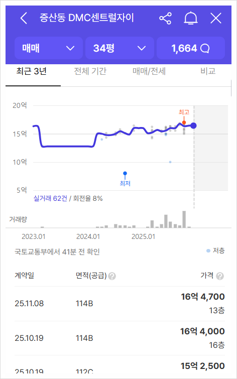 거래된 매물을 보면 평당 4,500만원~5,700만원 사이로 상당한 프리미엄이 붙어있다. 단계가 단계인만큼 프리미엄이 큰데 공시지가를 보면, 1,800만원부터 2천만원 이상까지 다양한데, 대부분 평당 1,800만원 수준이기에 평당 1,800만원으로 잡았다. 감정평가액은 보정률이 1.2~1.6배 수준이므로 1.4배하면 2,500만원이고 조합원들의 평당 종전자산평가액을 평당 2,500만원으로 잡으면 총 종전자산평가액은 14,384억이다.