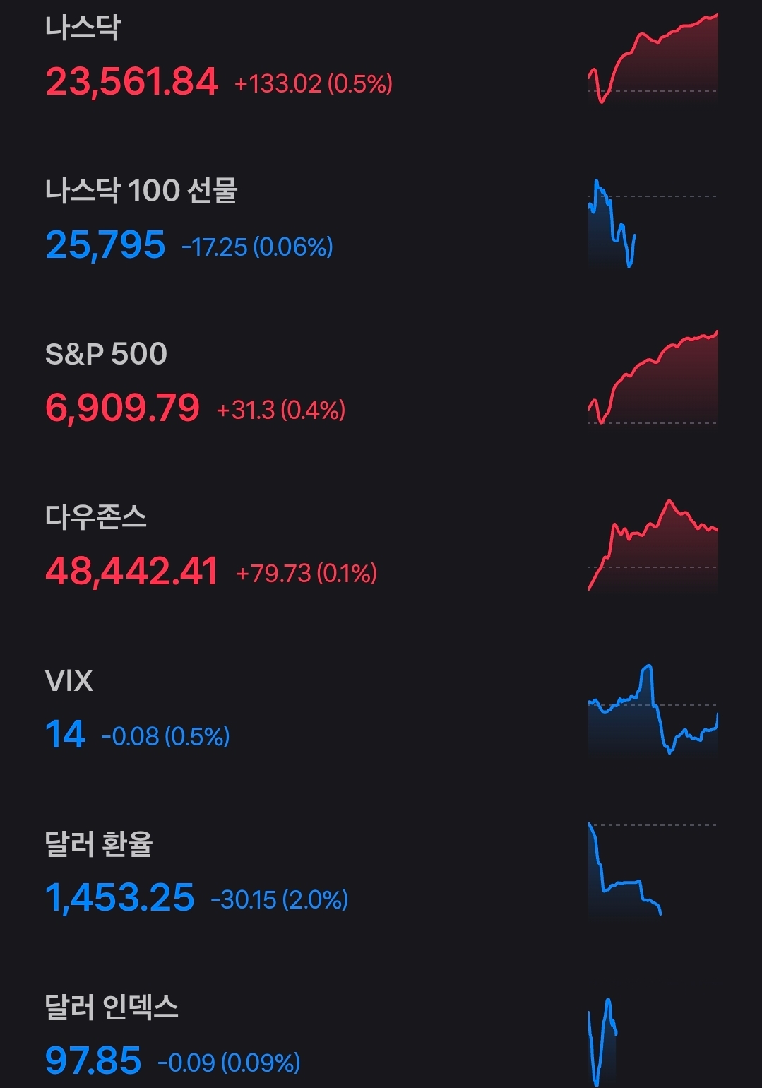 주요 지수는 완만한 상승 흐름을 유지했지만 정책 발언과 지표 해석의 온도차가 커지며 방향성에 대한 확신은 제한적인 모습입니다. 달러 약세와 환율 하락 흐름은 위험자산에 우호적인 환경을 만들 수 있으나 소비 심리 둔화는 향후 성장 모멘텀에 대한 의문을 남깁니다. 결국 낙관과 경계가 함께 공존하는 구도에서 시장은 숫자 하나보다 흐름의 일관성을 더 확인하려는 단계로 보입니다.