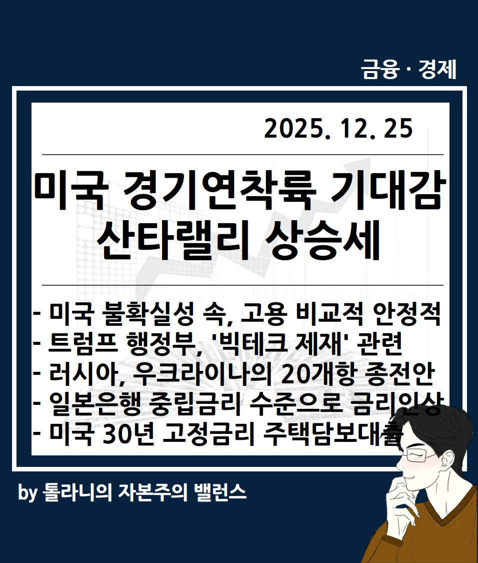 이에 '미국 경기 연착륙 기대감에 산타랠리 상승세, 일본 중립금리 이상으로 금리 인상 등 주요 국가 경제·금융 동향' 관련하여 언론 보도 및 국제금융센터 보고서를 통해 좀 더 자세히 알아보도록 하겠습니다.