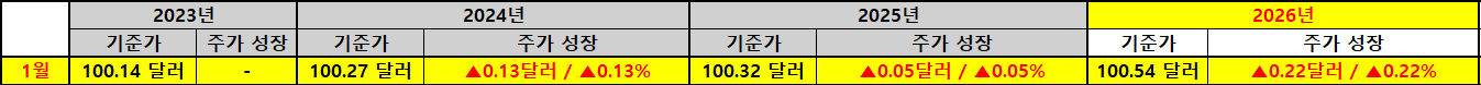 연도별 기준가 데이터를 살펴보아도 SGOV는 장기간에 걸쳐 100달러 내외의 좁은 범위에서 움직이고 있습니다. 이는 시세 차익을 노리는 자산이 아니라 원금 보존과 유동성 확보를 우선시하는 구조임을 다시 한 번 보여주는 부분입니다.