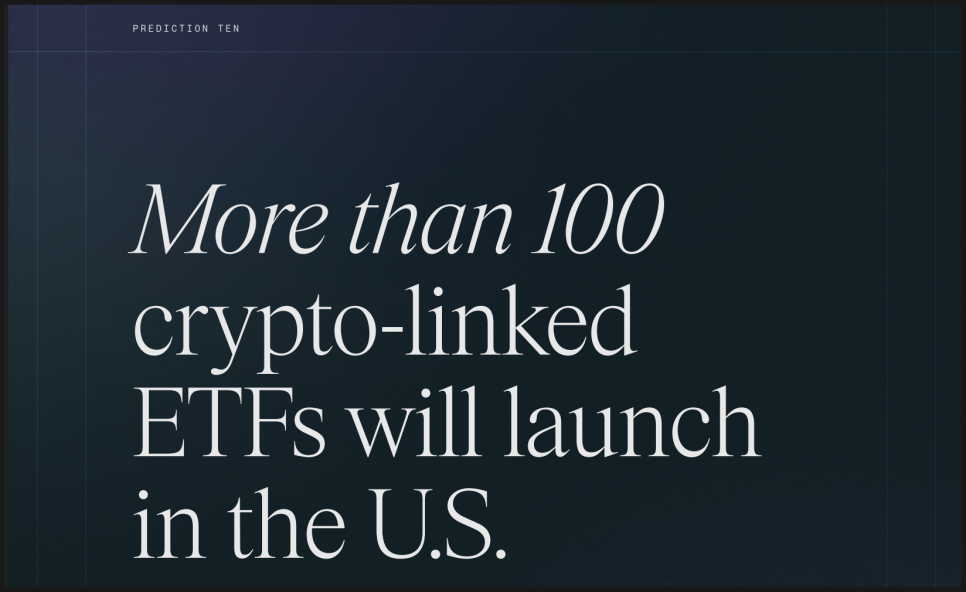 열 번째, 2026년에 미국에서 출시되는 크립토 관련 ETF가 100개를 넘어설 수 있다는 전망입니다.