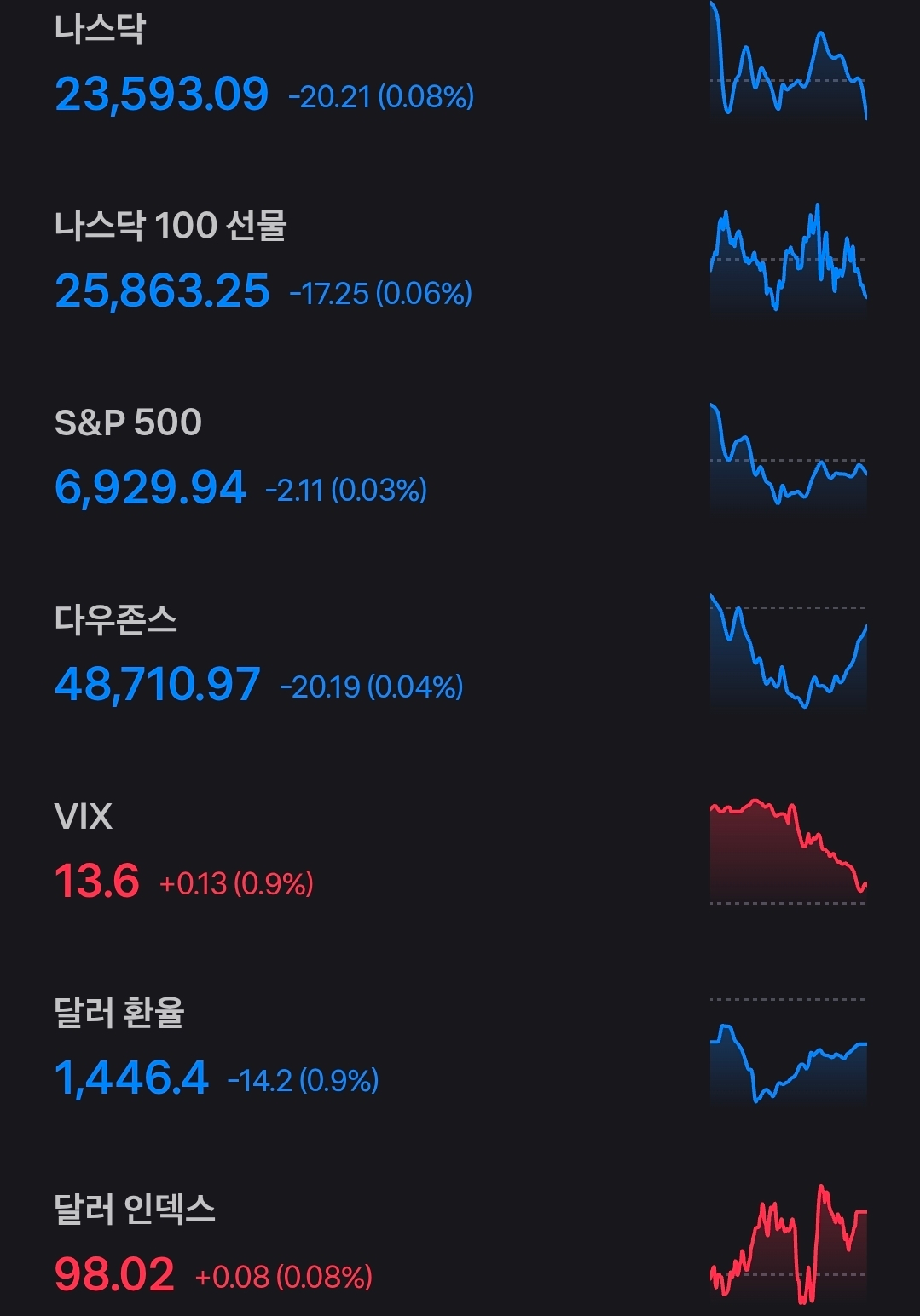 주요 지수는 전반적으로 큰 방향성 없이 제한적인 등락을 보이며 관망세가 이어졌습니다. 변동성 지표는 낮은 수준을 유지하고 있지만 지정학적 리스크와 정책 변수는 여전히 잠재적인 불확실성 요인으로 남아 있습니다. 시장은 단기 이벤트보다 구조적인 변화에 더 민감하게 반응하는 흐름입니다.