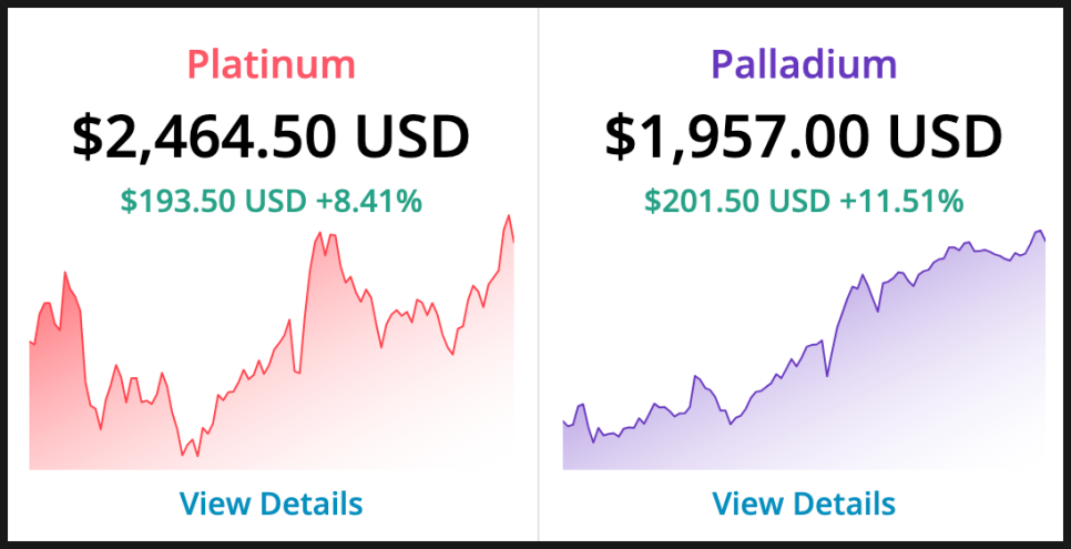 백금과 팔라듐 역시 하루에 각각 8% 이상 급등하며 강세를 보였습니다.