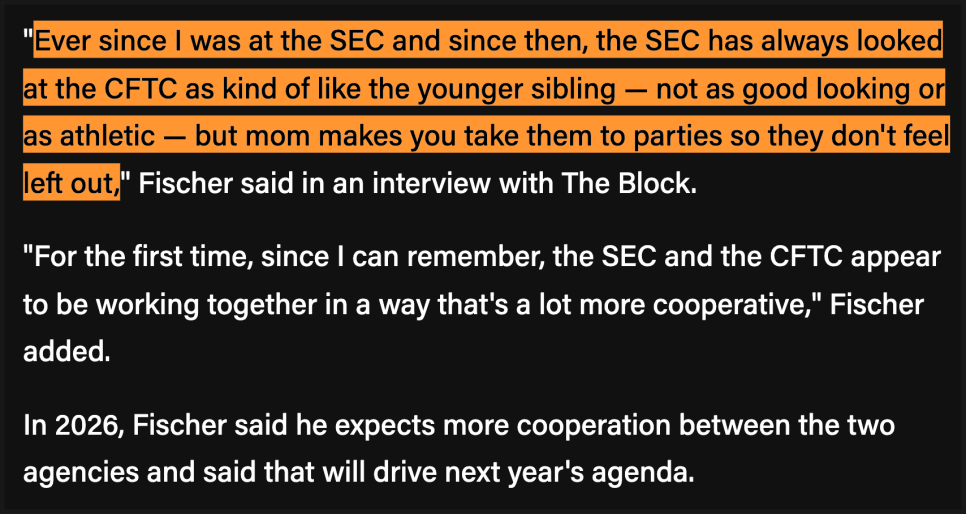 법조계에서는 이 변화를 꽤 의미 있게 보고 있습니다. 전직 SEC 고위 출신 변호사 하워드 피셔는, 과거에는 SEC가 CFTC를 늘 한 단계 아래로 봐왔지만 지금은 기억에 남을 만큼 협력적인 관계가 됐다고 평가했습니다. 그리고 이런 협력 기조가 2026년 규제 어젠다를 끌고 갈 것이라고 전망했죠.