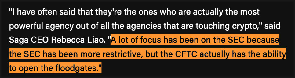 스나이더는 이걸 “시장을 본격적으로 열기 전에, 안전하게 시험해볼 수 있는 중요한 전환점”이라고 평가했죠. 한편 규제의 또 다른 축인 CFTC의 존재감도 빠르게 커지고 있습니다.