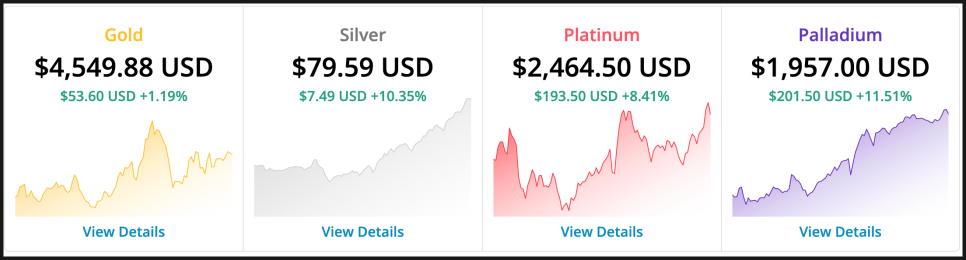 한편 귀금속 랠리는 역사적인 수준으로 평가받고 있습니다. 비트코인이 조정을 받는 동안, 금속 가격은 가파르게 올랐습니다. 금은 금요일 트로이온스당 4,580달러를 돌파하며 사상 최고치를 기록했고, 은은 75달러를 넘기며 또 하나의 최고가를 썼습니다.