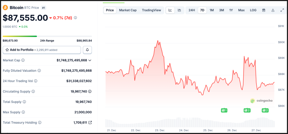 2025년 12월 27일 현 시점 가장 중요한 암호화폐 이슈 정리해 드리겠습니다.