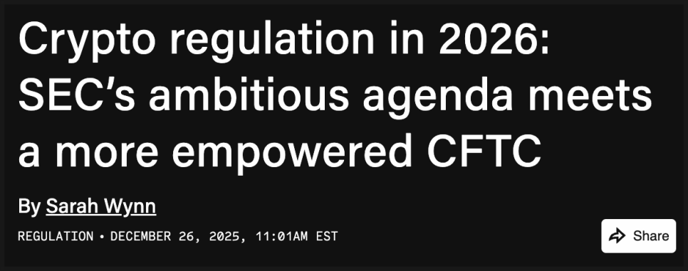 한편 2026년 미국 암호화폐 규제 환경을 봤을 때 SEC와 CFTC가 더 이상 싸우는 관계가 아니라, 역할을 나눠 협력하는 국면으로 들어가고 있다는 분석도 나오고 있는데요. 그리고 이 변화가 2026년 규제 방향을 좌우할 가능성이 크다고 합니다.