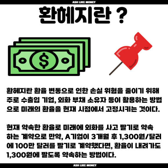 25년 12월 23일까지 꼭 해외주식을 팔지 않고 환헤지(선물환 매도)만 하면 양도소득세 혜택을 준다. 환헤지 상품 매입액은 1인당 1억원이 한도이다. 환헤지 상품 매입액의 5%(1억원의 5%, 최대 500만원)을 해외주식 양도소득세 계산을 할 때 소득공제를 한다는 것이다. 환헤지는 환율 변동의 위험을 없애는 거래방식으로 현재 시점에서 미래 환율을 미리 고정하는 행위이다. 즉, 미국 주식을 팔기 싫다면 선물환 매도(환헤지)라도 하라는 것이다.