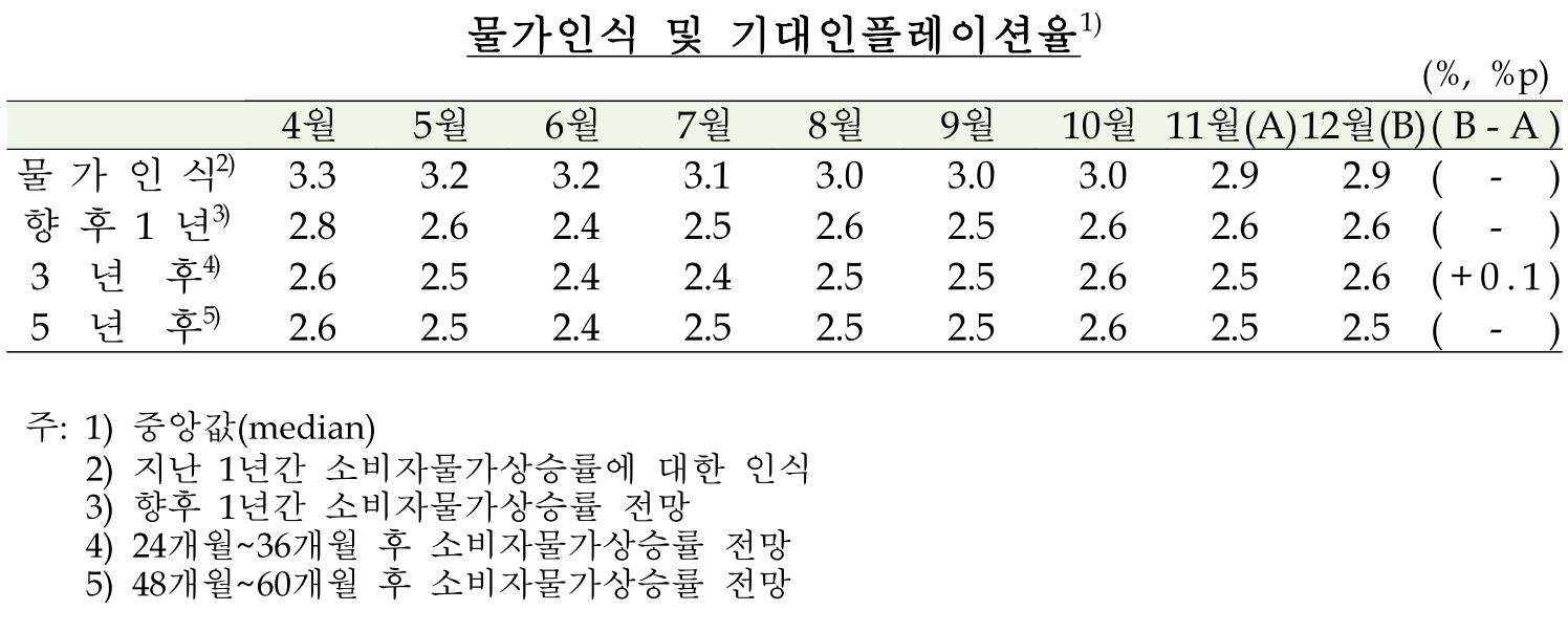 - 지난 1년간의 소비자물가상승률에 대한 인식은 2.9%로 전월과 동일