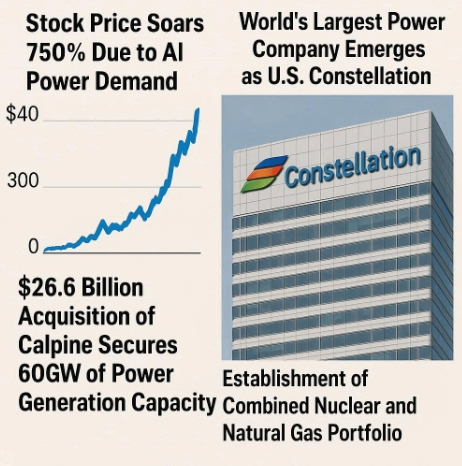 컨스텔레이션 에너지는 최근 마이크로소프트와 계약을 체결하여 펜실베이니아 원자로를 재가동하여 데이터센터에 전력을 공급한다. 엔터지 역시, 데이터센터를 포함한 다양한 산업에 전력을 공급한다. 넥스트에라 에너지는 전기를 깨끗한 풍력 및 태양광 기반으로 공급하는데, 태양력과 풍력의 한계에 의해 공급량은 압도적이지 못하다.