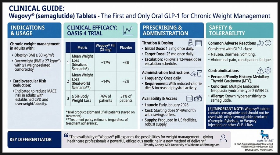 이 승인으로 위고비 알약은 체중 감량을 목적으로 승인된 최초의 경구용 GLP-1 치료제가 됐습니다. 쉽게 말하면, 이제 살을 빼는 데 효과가 입증된 GLP-1 계열 약을 주사가 아니라 알약으로도 복용할 수 있게 된 거죠.