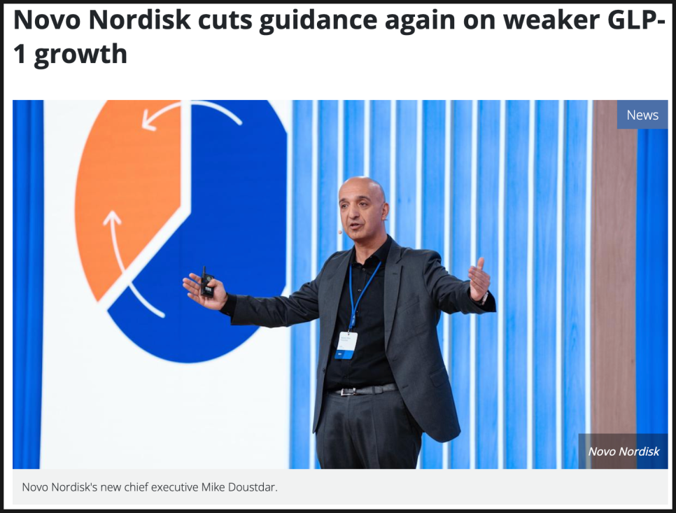 여기서 잠깐, 노보 노디스크가 어떤 회사인지 간단히 짚고 가는 게 좋겠습니다. 노보 노디스크는 덴마크에 본사를 둔 제약회사로, 당뇨병과 비만 치료 분야에서는 사실상 글로벌 1~2위를 다투는 기업입니다. 특히 오젬픽(Ozempic)과 위고비 같은 GLP-1 계열 약물로 전 세계적인 붐을 일으킨 장본인이죠. GLP-1은 원래 우리 몸에서 식욕과 혈당을 조절하는 호르몬인데, 이 기능을 활용한 약이 체중 감량 효과까지 보여주면서 시장이 폭발적으로 커졌습니다.