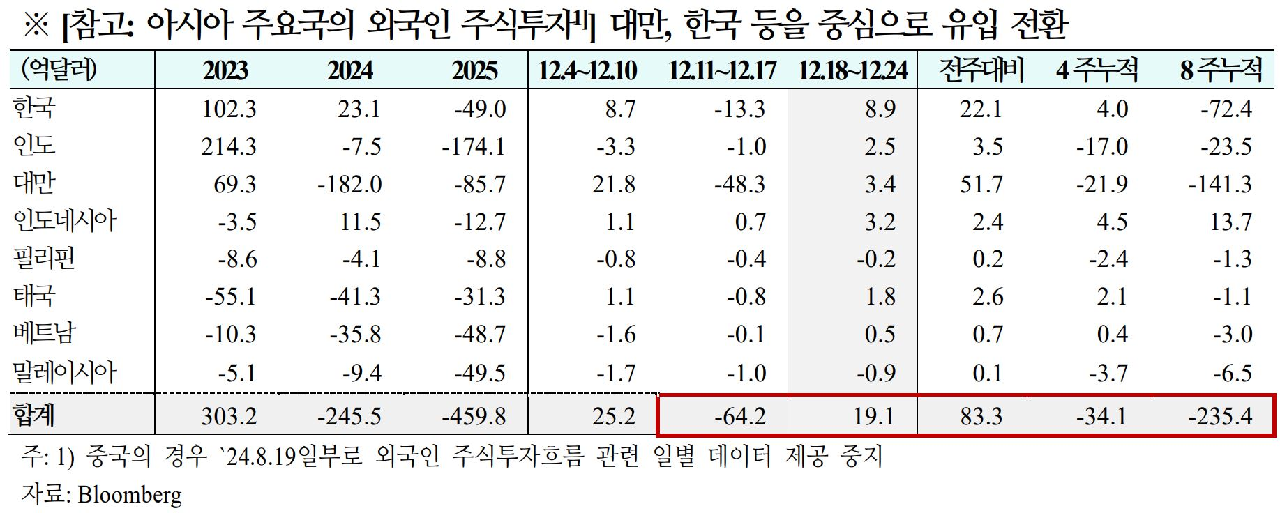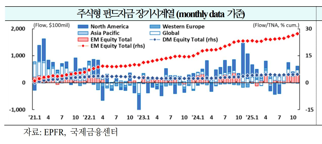 이에 ‘주간 글로벌 투자 자금흐름(25년 12월 18일(목) ~ 12월 24일(수))’ 관련하여 국제금융센터 보고서를 통해 좀 더 자세히 알아보도록 하겠습니다.
