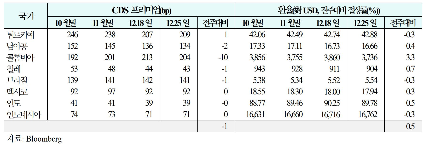 03. 주간 신흥국 CDS 및 환율 동향('25.12.19 (금) ~ 12.25 (목))